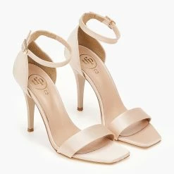 TFP σατέν πέδιλα.Έχουν κλειστή φτέρνα.Δένουν με μπαρέτα στο ύψος του αστραγάλου.Καρέ γραμμή.Δερμάτινος πάτος.Ελληνικής κατασκευής.