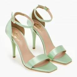 TFP σατέν πέδιλα.Έχουν κλειστή φτέρνα.Δένουν με μπαρέτα στο ύψος του αστραγάλου.Καρέ γραμμή.Δερμάτινος πάτος.Ελληνικής κατασκευής.