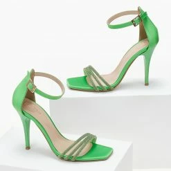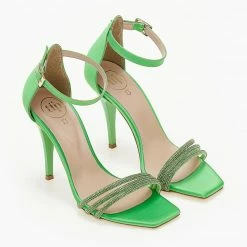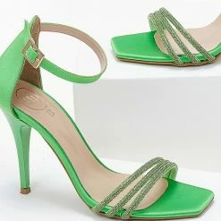 Πέδιλα σατέν TFP με Strass λουράκια – Λαχανί