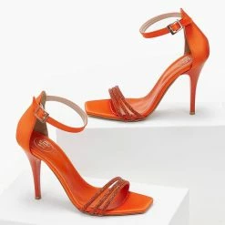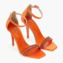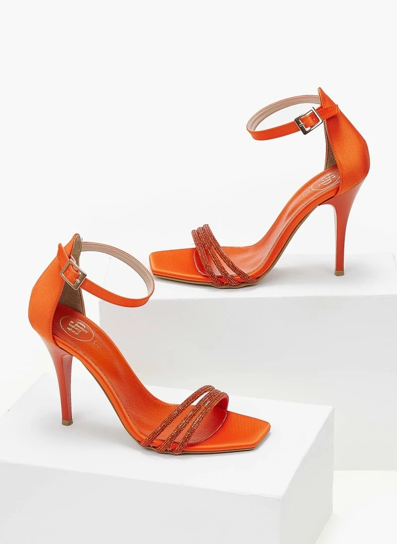Πέδιλα σατέν TFP με Strass λουράκια – Πορτοκαλί