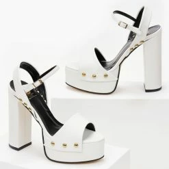 Πέδιλα TFP με Block Heel τακούνι – Λευκό