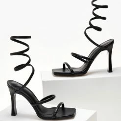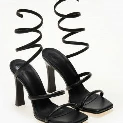 Πέδιλα TFP με λεπτά λουράκια με κρύσταλλα. Έλασμα σπιράλ στο ύψος της γάμπας. Έχουν λεπτό ψηλό τακούνι. Ελληνικής κατασκευής,χειροποίητα.