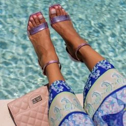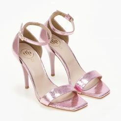 Πέδιλα TFP με pattern φίδι. Έχουν κλειστή φτέρνα. Δένουν με μπαρέτα στο ύψος του αστραγάλου. Δερμάτινος πάτος. Ελληνικής κατασκευής.