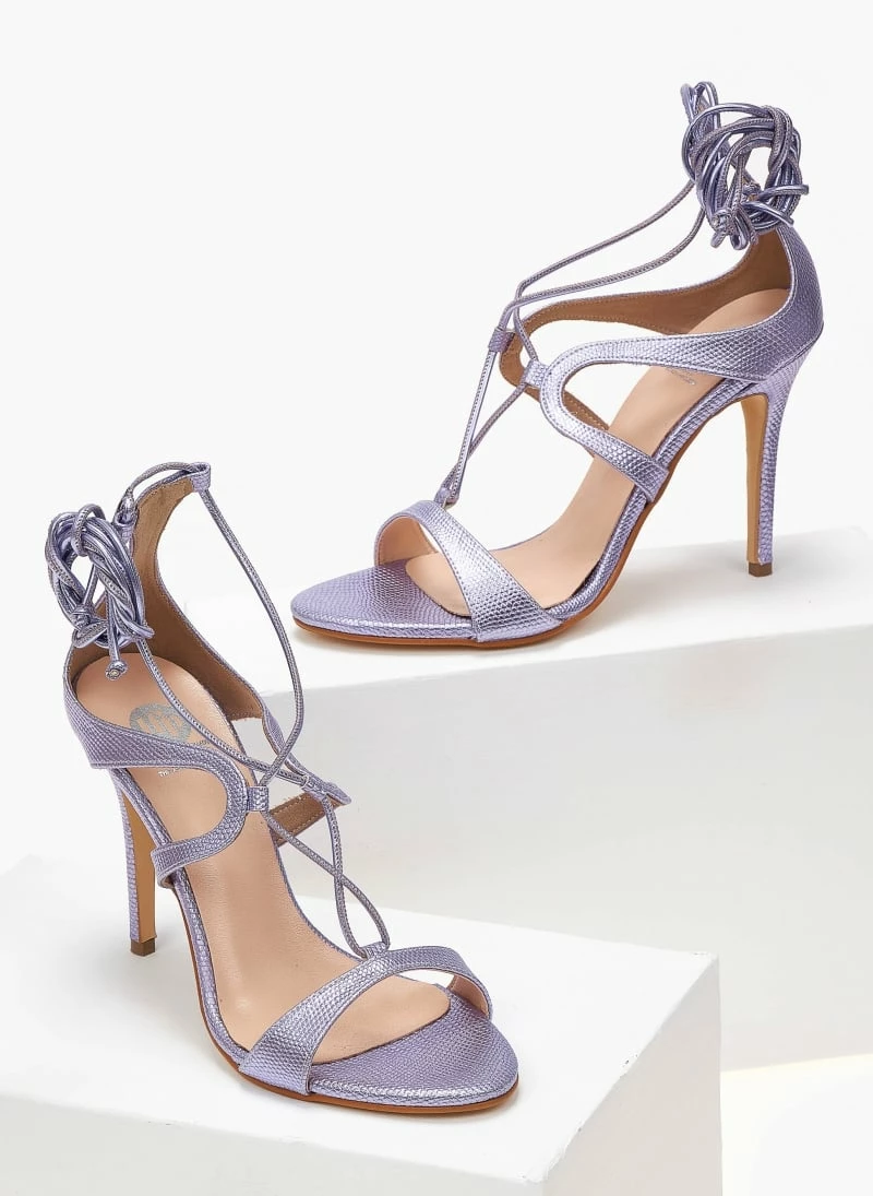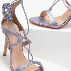 Πέδιλα με δέσιμο στη γάμπα.Έχουν κλειστή φτέρνα και ψηλό τακούνι.Ελληνικής κατασκευής.