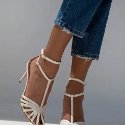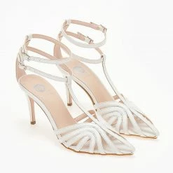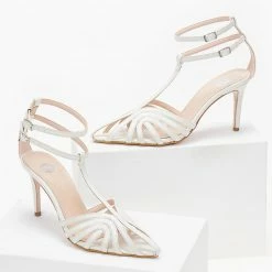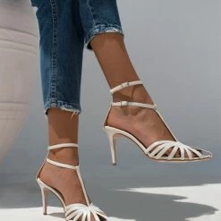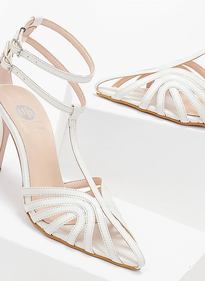 Μυτερά πέδιλα TFP RETRO με ανοίγματα. Έχουν λεπτό ψηλό τακούνι. Δένουν με διπλή μπαρέτα στο ύψος του αστραγάλου. Ελληνικής κατασκευής.