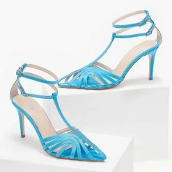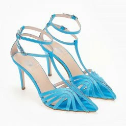 Πέδιλα TFP Retro σατέν με ανοίγματα – Γαλάζιο