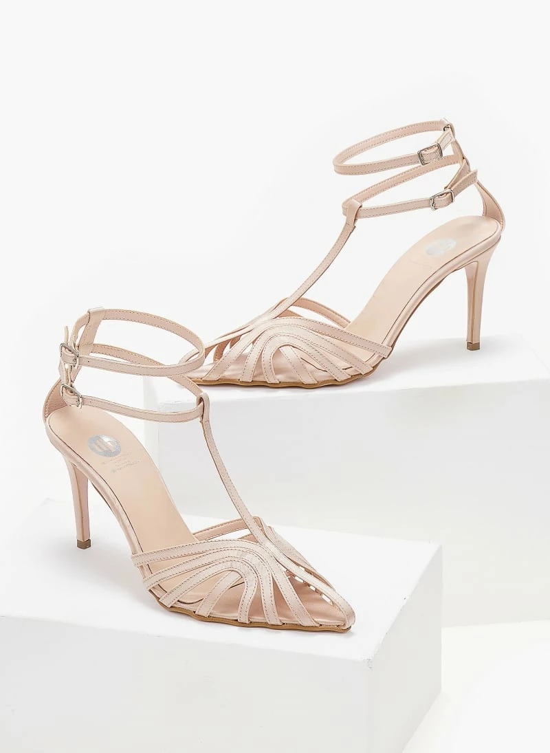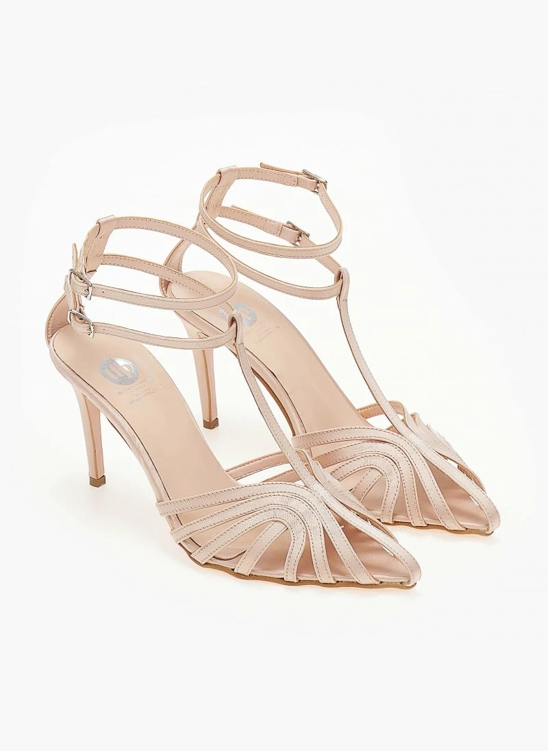 Πέδιλα TFP Retro σατέν με ανοίγματα – Nude