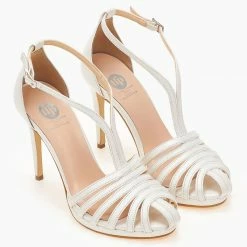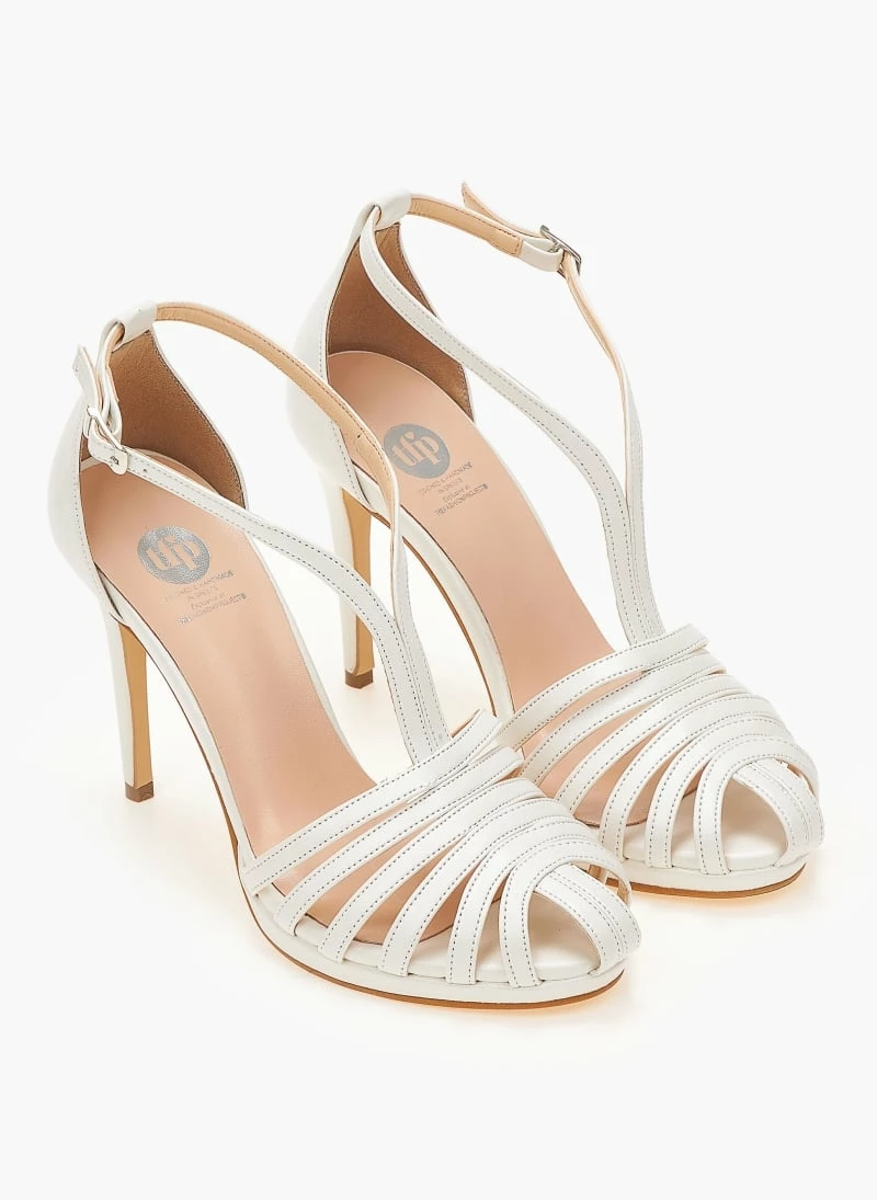 Ρετρό TFP πέδιλα σε μεταλλικές αποχρώσεις. Δένουν με λουράκια στο ύψος του αστραγάλου. Έχουν κλειστή φτέρνα και λεπτή φιάπα. Ελληνικής κατασκευής.