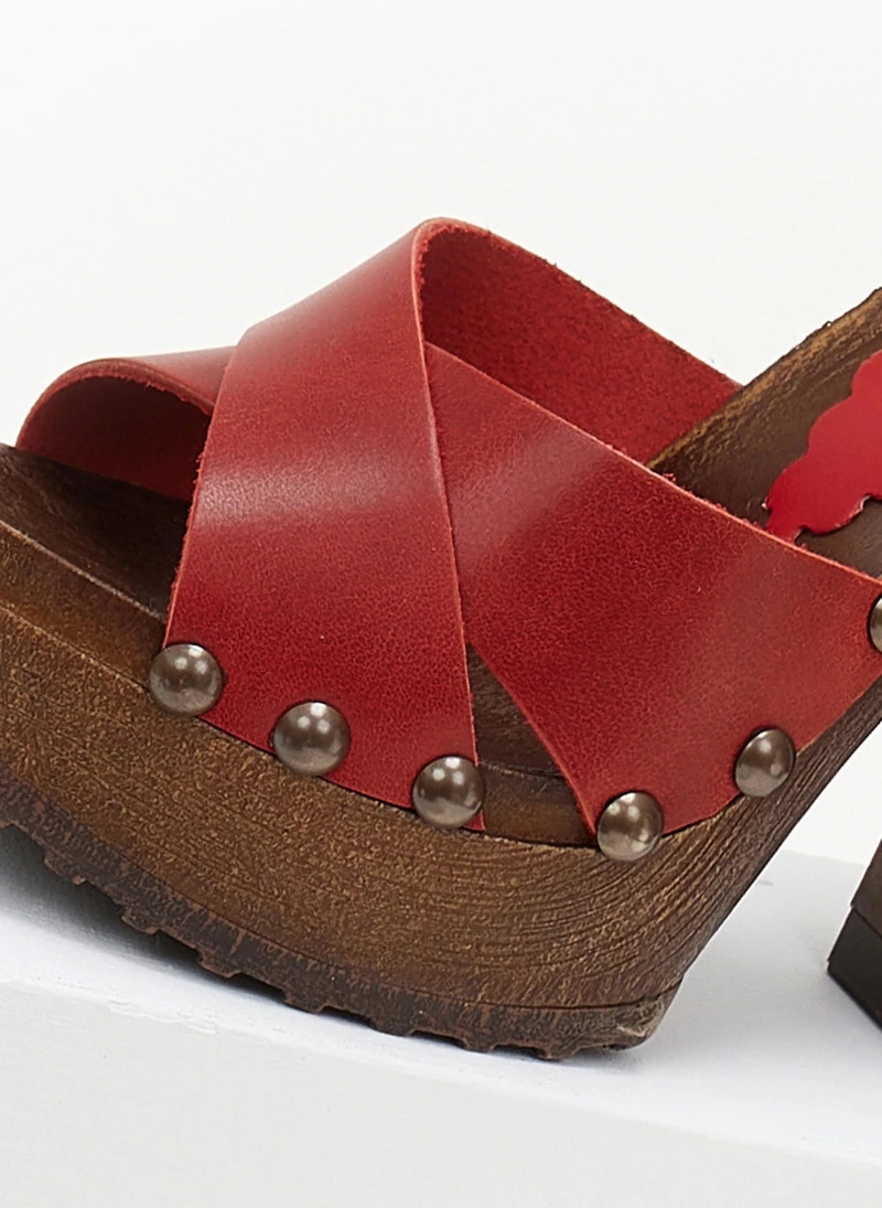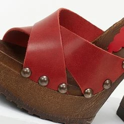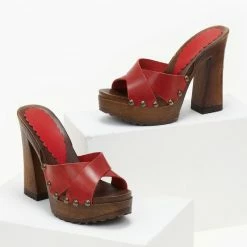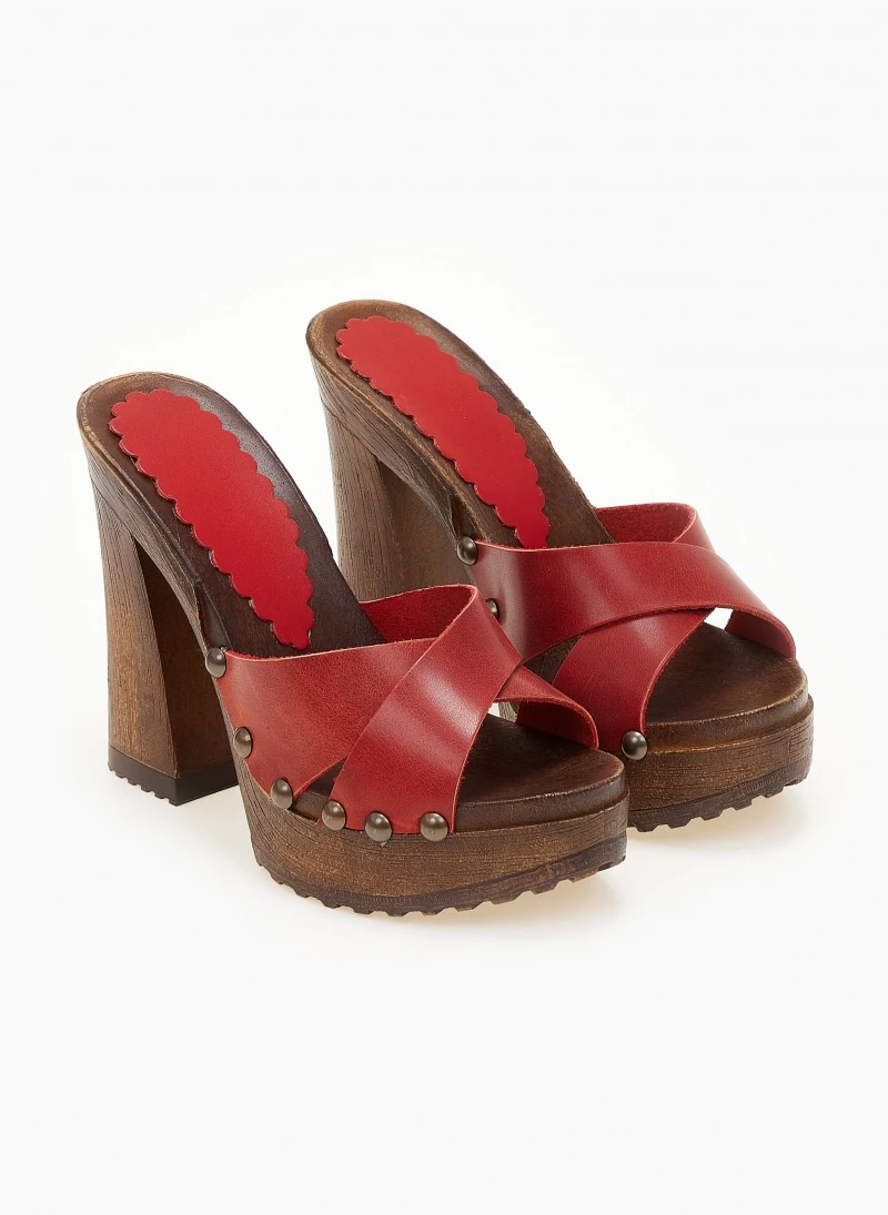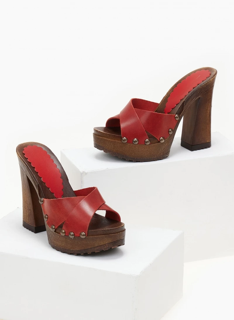 TFP Τσόκαρα δερμάτινα με ψηλό τακούνι – Κόκκινο