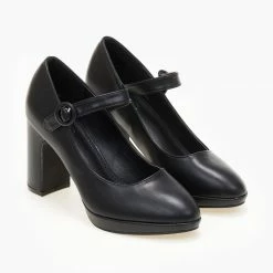 Γόβες με λεπτή φιάπα και ψηλό τακούνι. Δένουν με μπαρέτα στο ύψος του κουτεπιέ.