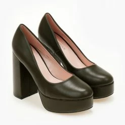 Γόβες σε στρογγυλή γραμμή με ψηλή φιάπα. Έχουν ψηλό τετράγωνο τακούνι.