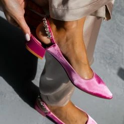 The Fashion Project Γόβες μυτερές σατέν με πέτρες – Φούξια