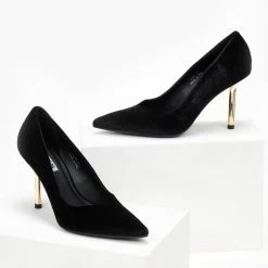 The Fashion Project Γόβες μυτερές βελουτέ – Μαύρο