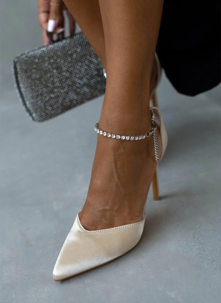 The Fashion Project Γόβες σατέν με Anklet Strass – Μπεζ