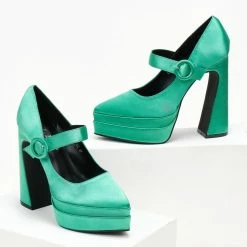 The Fashion Project Γόβες σατέν με φιάπα – Σμαραγδί