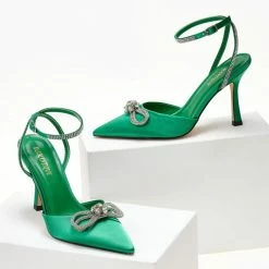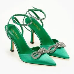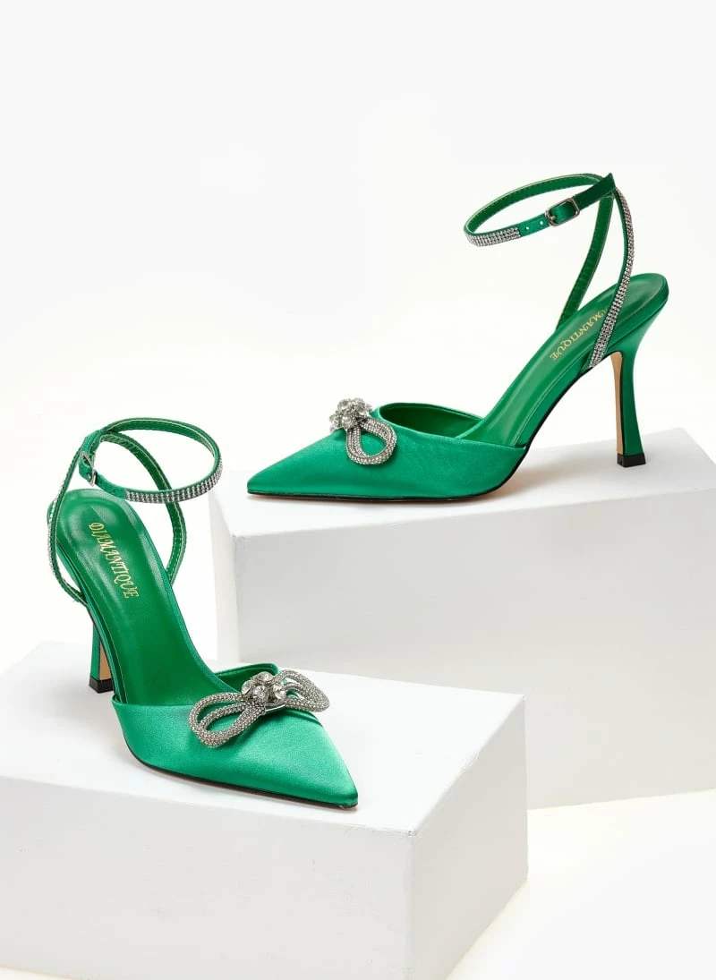 The Fashion Project Γόβες σατέν με μπαρέτα και Strass – Πράσινο