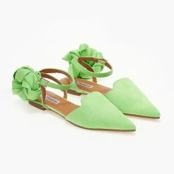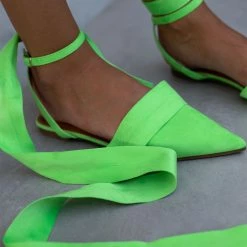 The Fashion Project Μπαλαρίνες Suede με Lace Up δέσιμο – Λαχανί