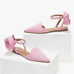 Μπαλαρίνες mules μυτερές suede με μπαρέτα. Δένουν με φαρδιά κορδέλα στη γάμπα. Η κορδέλα μπορεί να αφαιρεθεί.