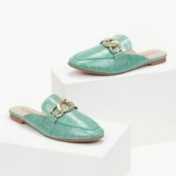 The Fashion Project Mules φλατ με Pattern κροκό – Μέντα