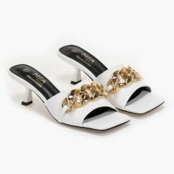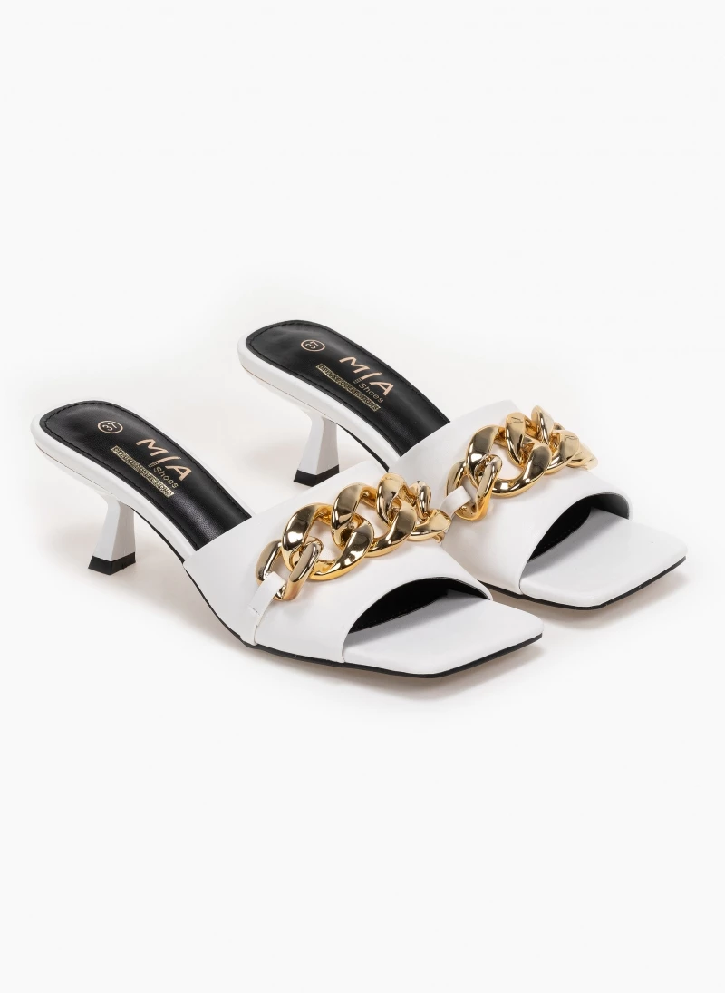 The Fashion Project Mules καρέ με αλυσίδα – Λευκό