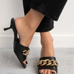 The Fashion Project Mules καρέ με αλυσίδα – Μαύρο