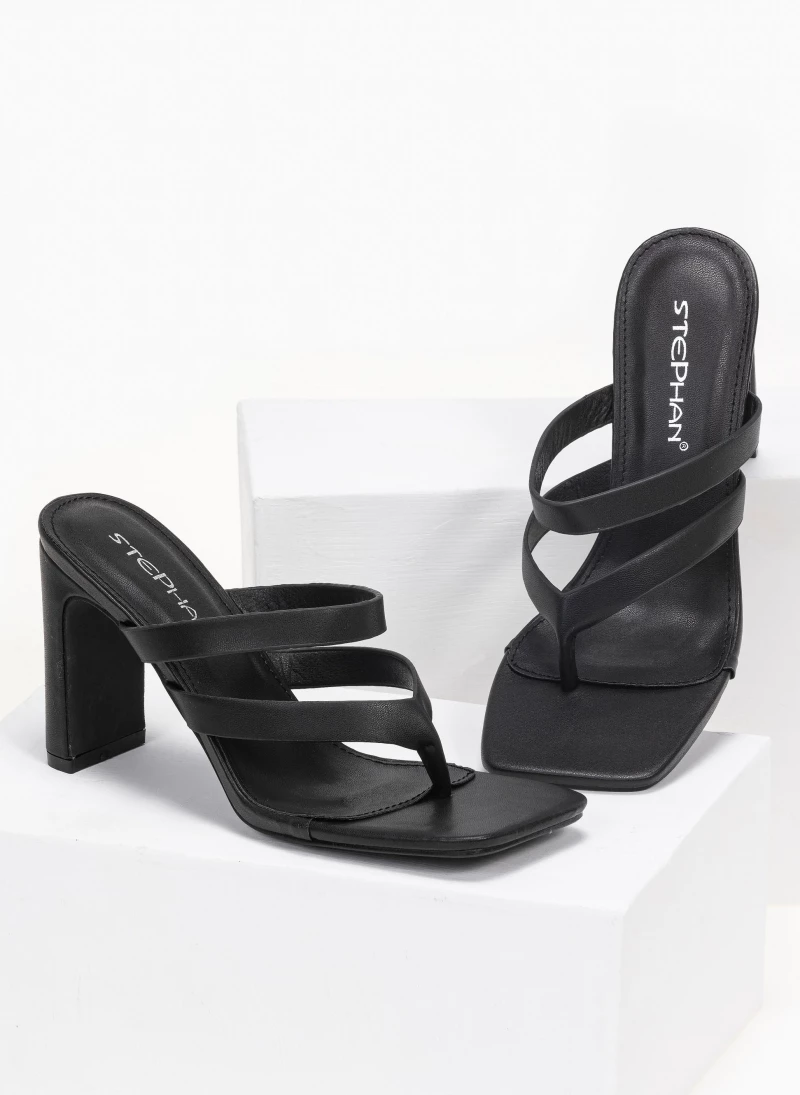 Καρέ mules με λουράκια.Έχουν ψηλό τακούνι.