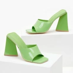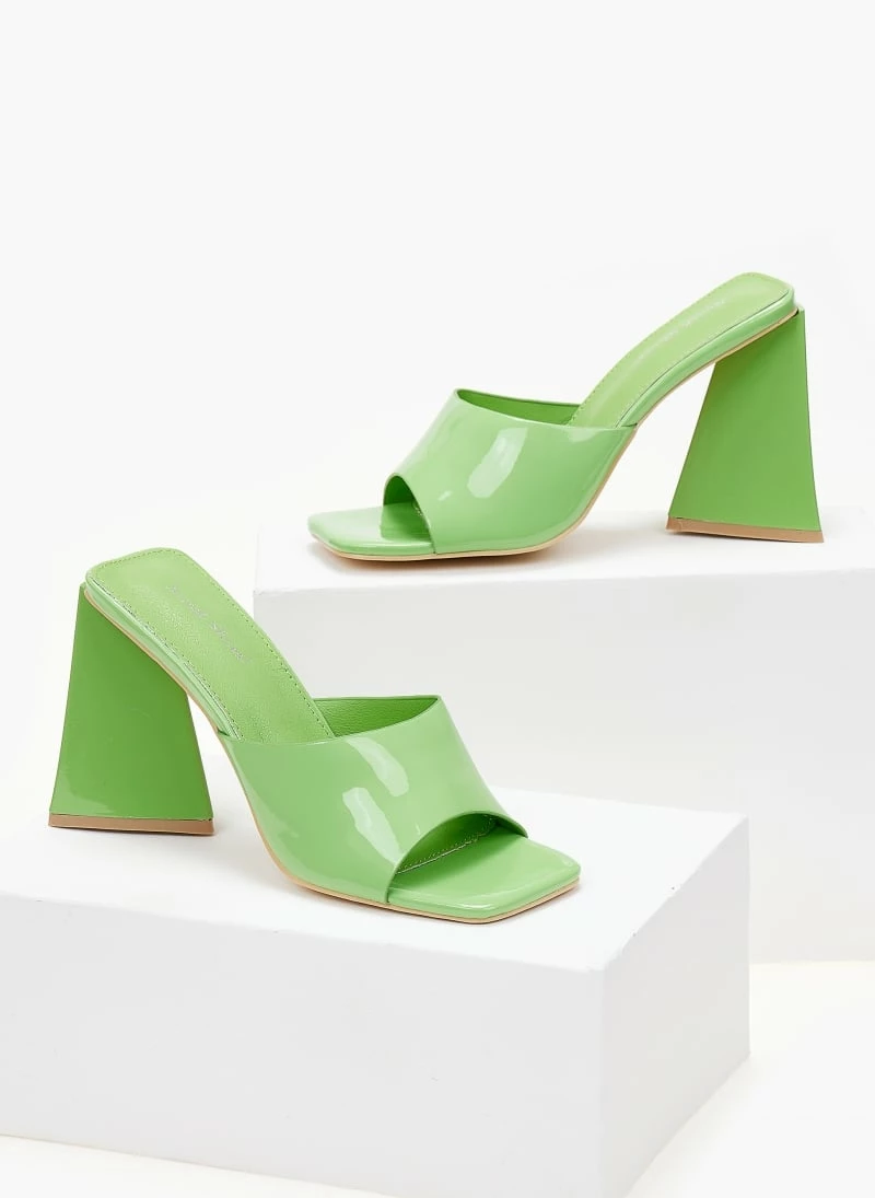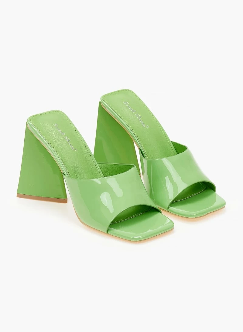 The Fashion Project Mules λουστρίνι με φαρδιά φάσα – Λαχανί