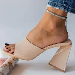 The Fashion Project Mules λουστρίνι με φαρδιά φάσα – Nude