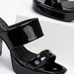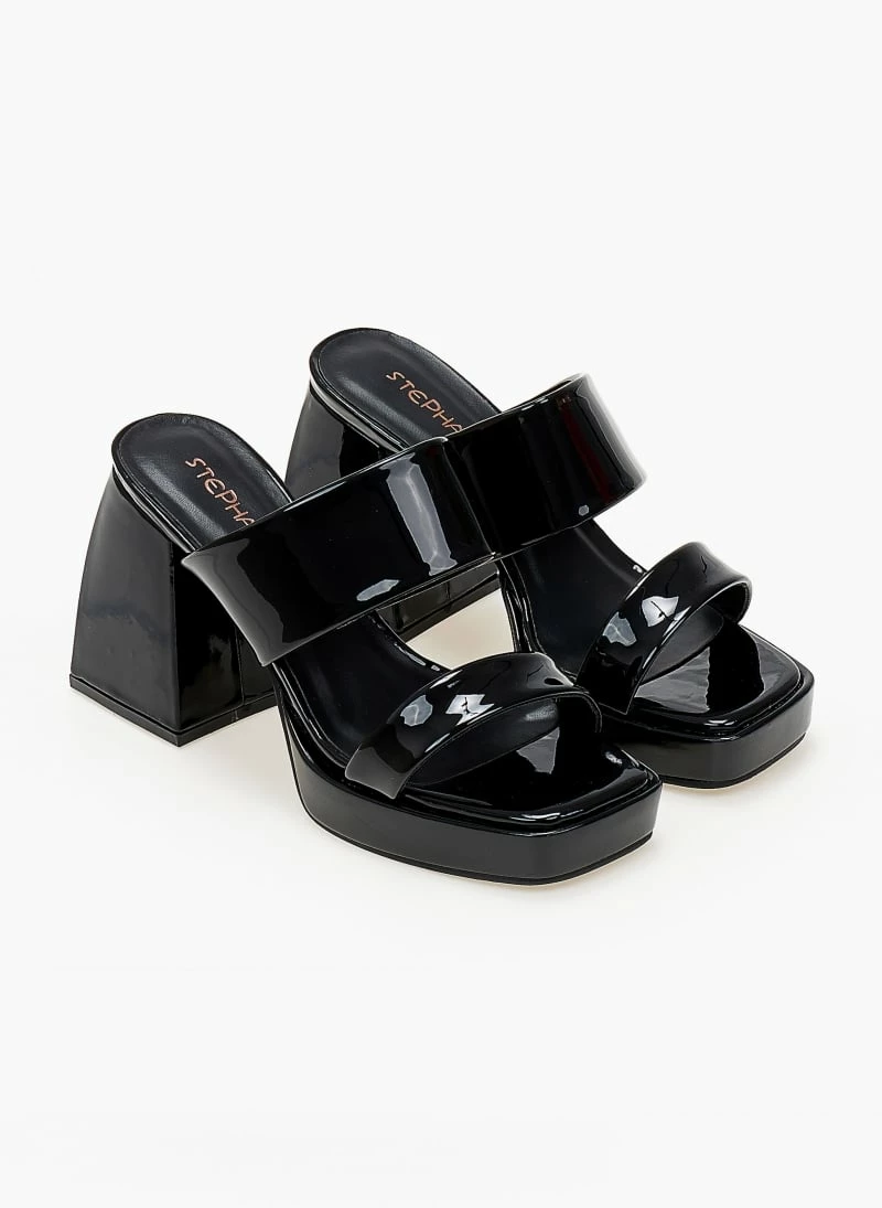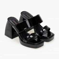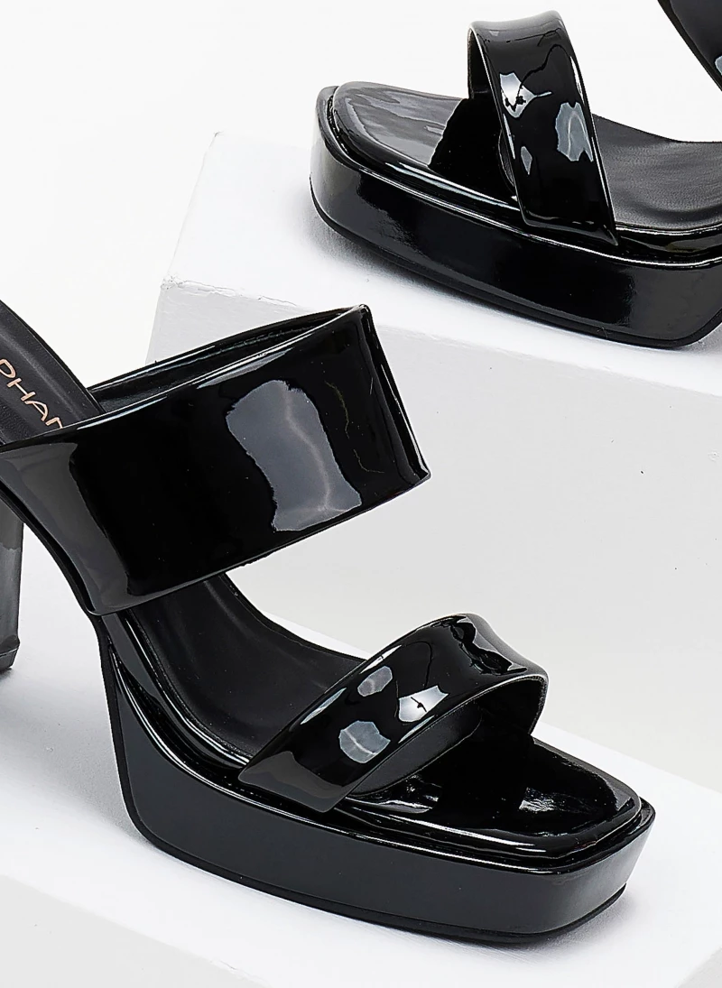 Mules λουστρίνι με δύο φάσες. Έχουν φιάπα και ιδιαίτερο τακούνι.