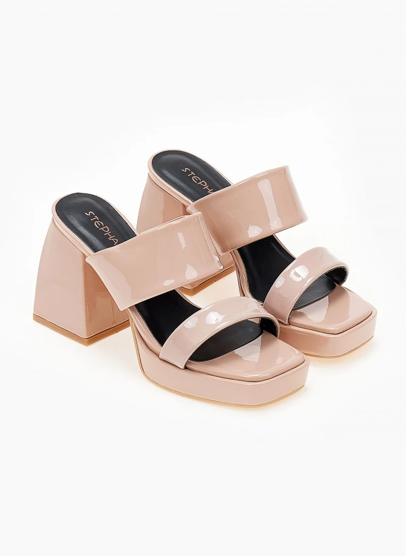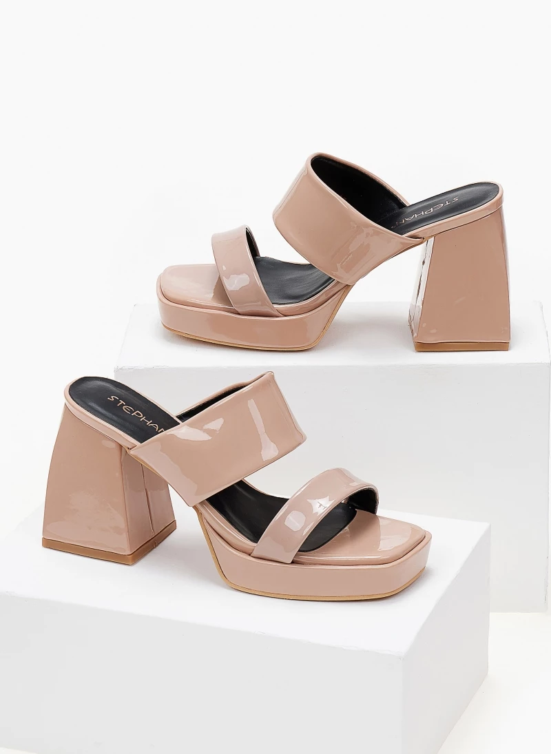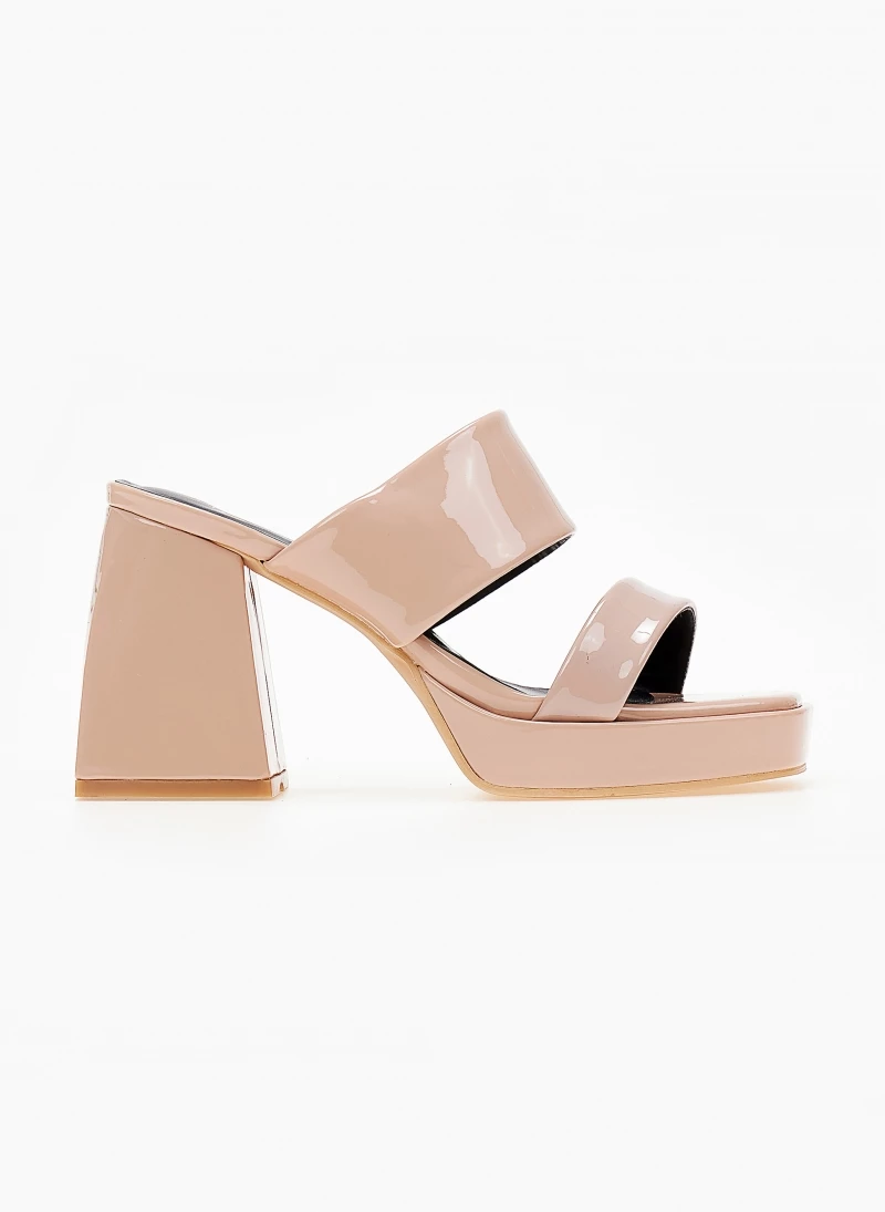 The Fashion Project Mules λουστρίνι με ιδιαίτερο τακούνι – Nude