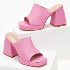 Mules με χωστή φάσα.Έχουν φαρδύ ιδιαίτερο τακούνι και λεπτή φιάπα.Καρέ γραμμή.