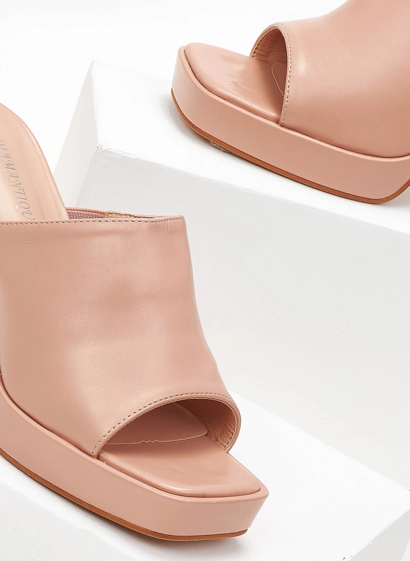 Mules με χωστή φάσα.Έχουν φαρδύ ιδιαίτερο τακούνι και λεπτή φιάπα.Καρέ γραμμή.