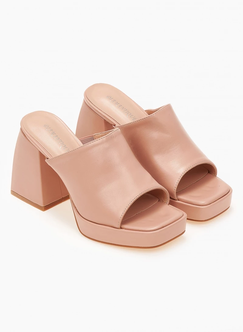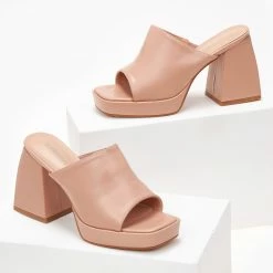 The Fashion Project Mules με χοντρό ιδιαίτερο τακούνι – Nude