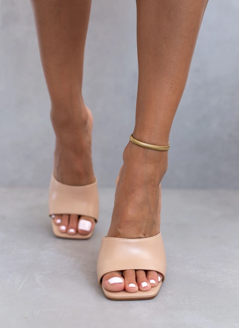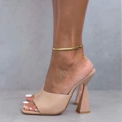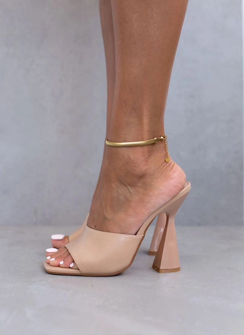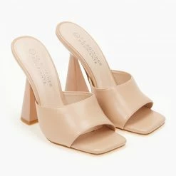 The Fashion Project Mules με γυαλιστερό τακούνι καμπάνα – Nude