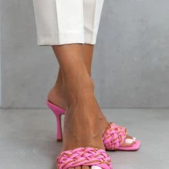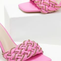The Fashion Project Mules με πλεκτό σχέδιο και αλυσίδες – Φούξια