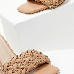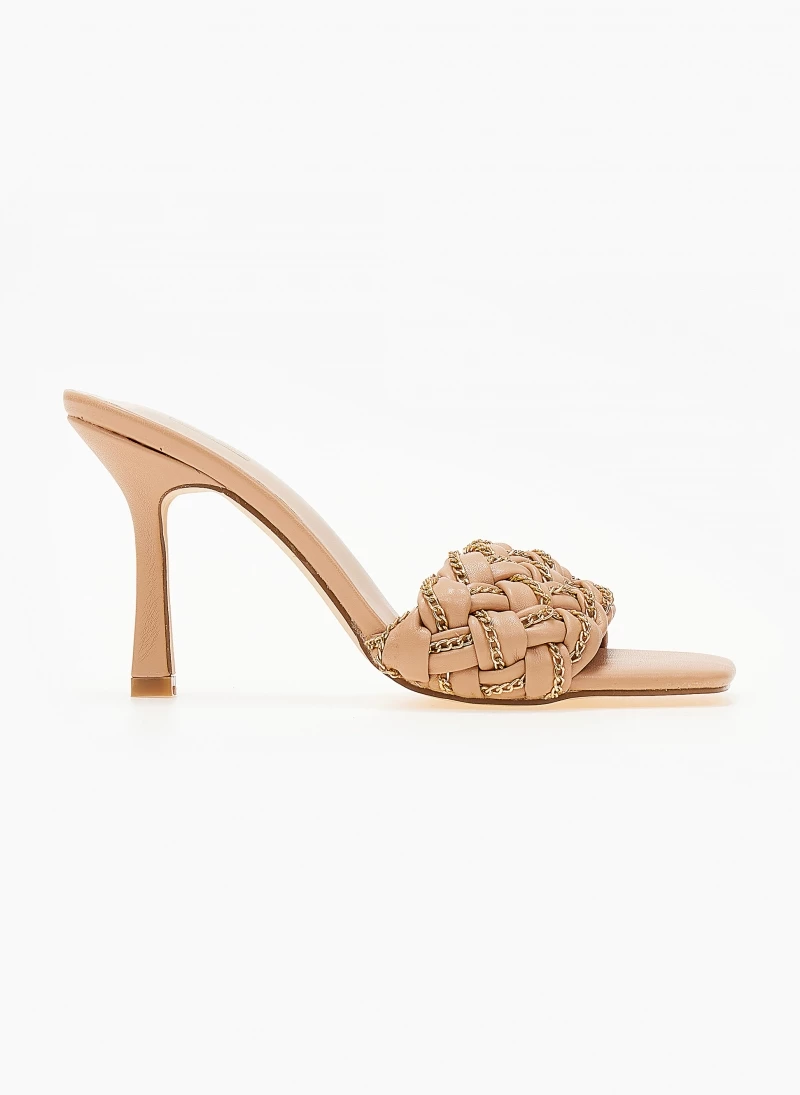 The Fashion Project Mules με πλεκτό σχέδιο και αλυσίδες – Μπεζ