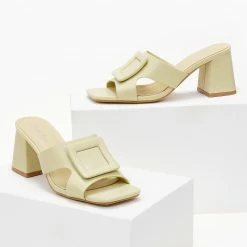 The Fashion Project Mules με τετράγωνη αγκράφα – Λαχανί