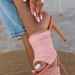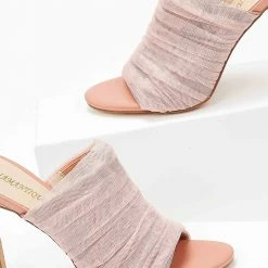 Mules με φαρδιά φάσα ντυμένη με τούλι. Έχουν διακριτικό λάστιχο στην εσωτερική τους πλευρά. Ψηλό λεπτό τακούνι.