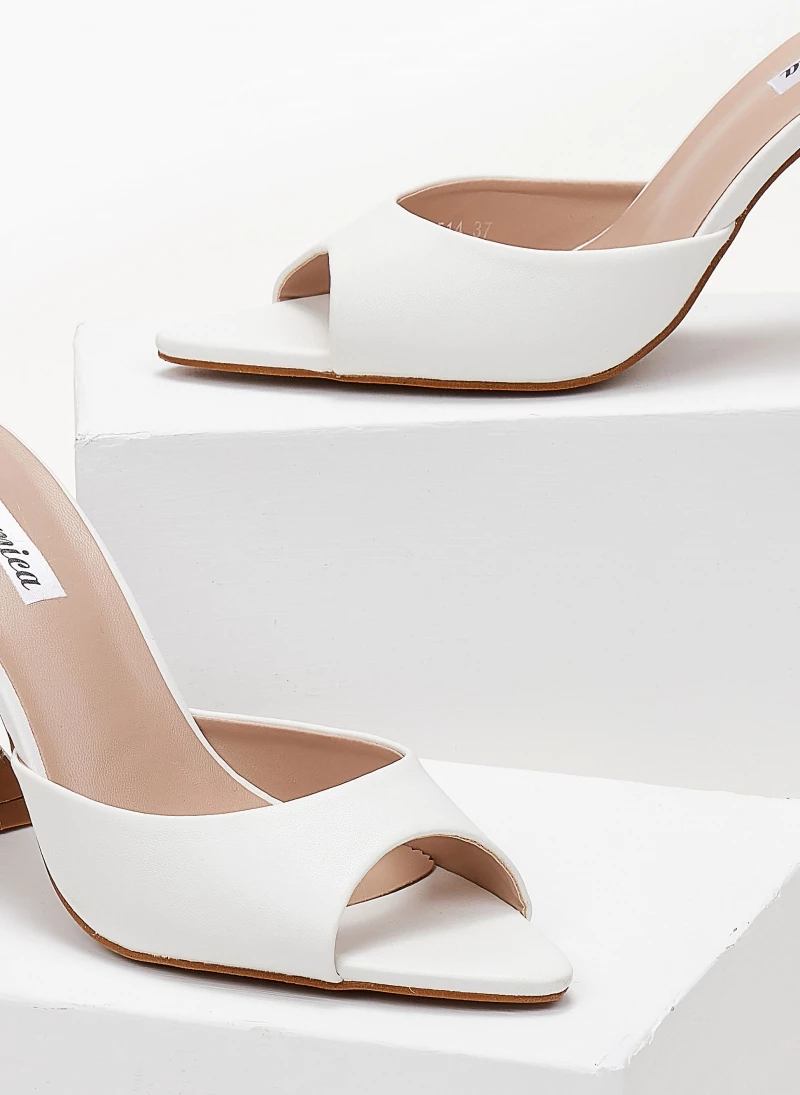 The Fashion Project Mules μυτερά με ιδιαίτερο τακούνι – Λευκό