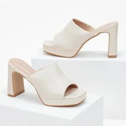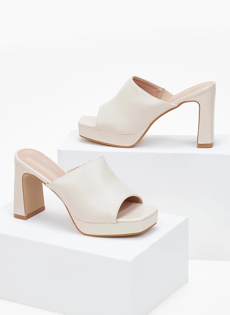 Mules πέδιλα με χωστή φάσα.Έχουν ιδιαίτερο τακούνι.Διαθέτουν λάστιχο στο εσωτερικό τους,