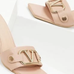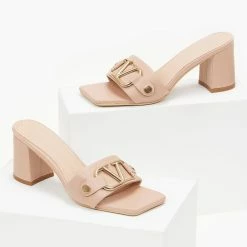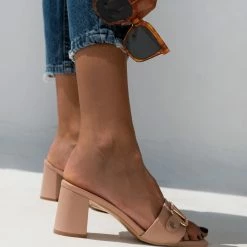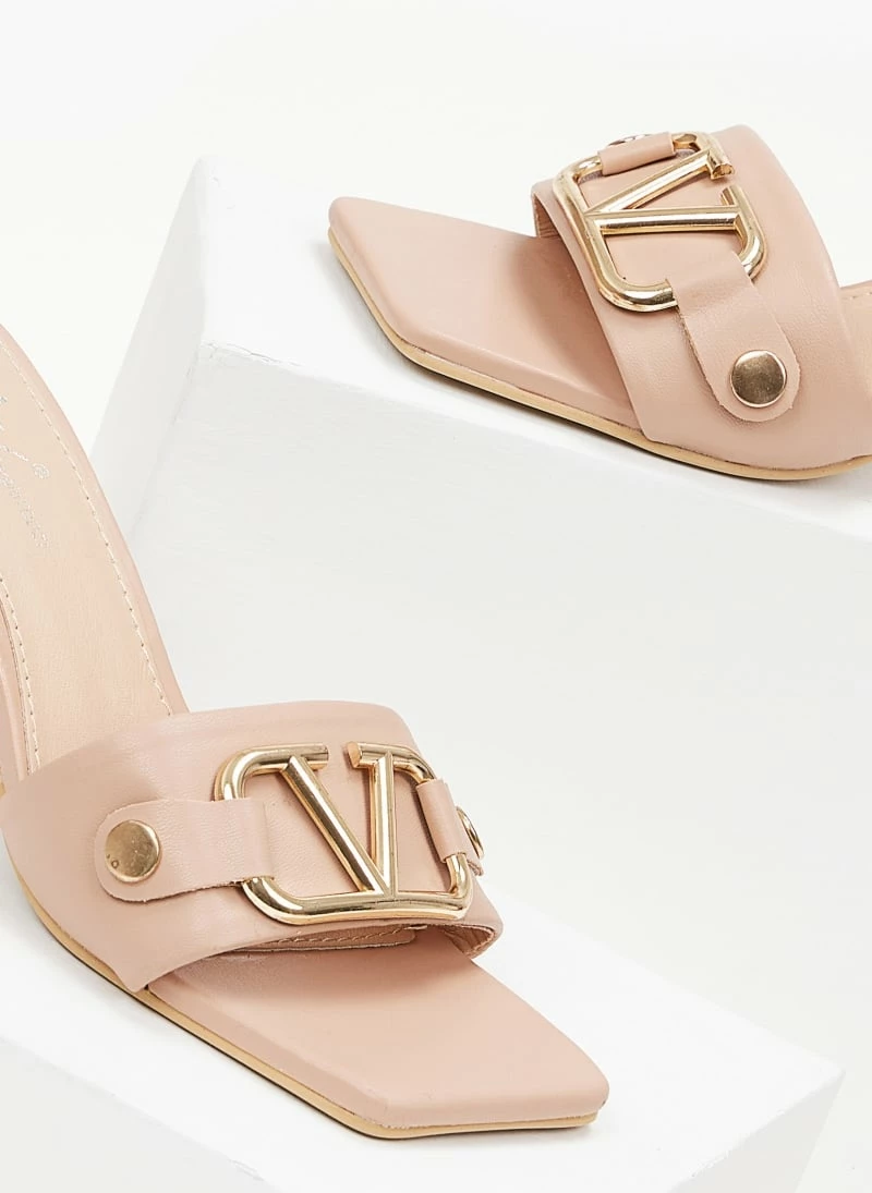 The Fashion Project Mules σε καρέ γραμμή με μεταλλικό διακοσμητικό – Nude