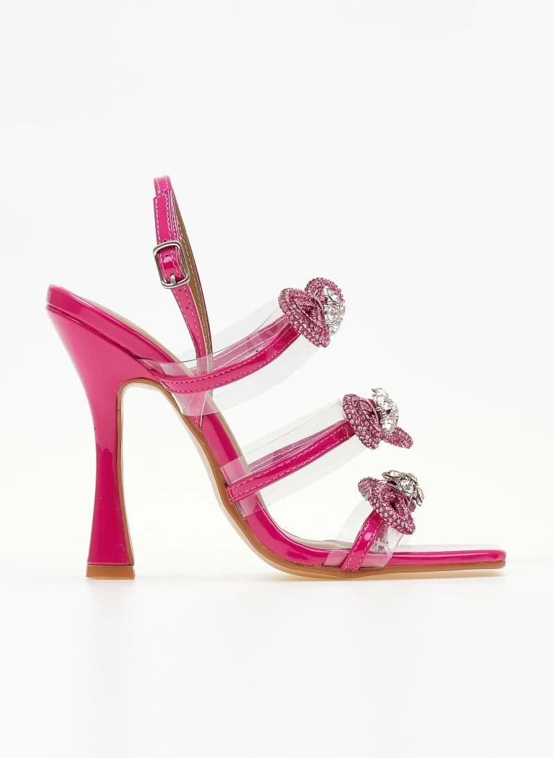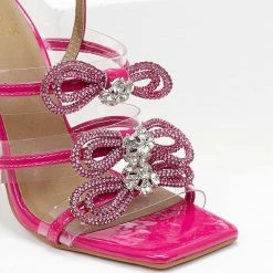 The Fashion Project Πέδιλα διαφανείς με Strass φιόγκους – Magenta