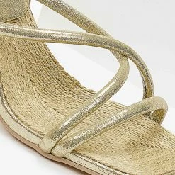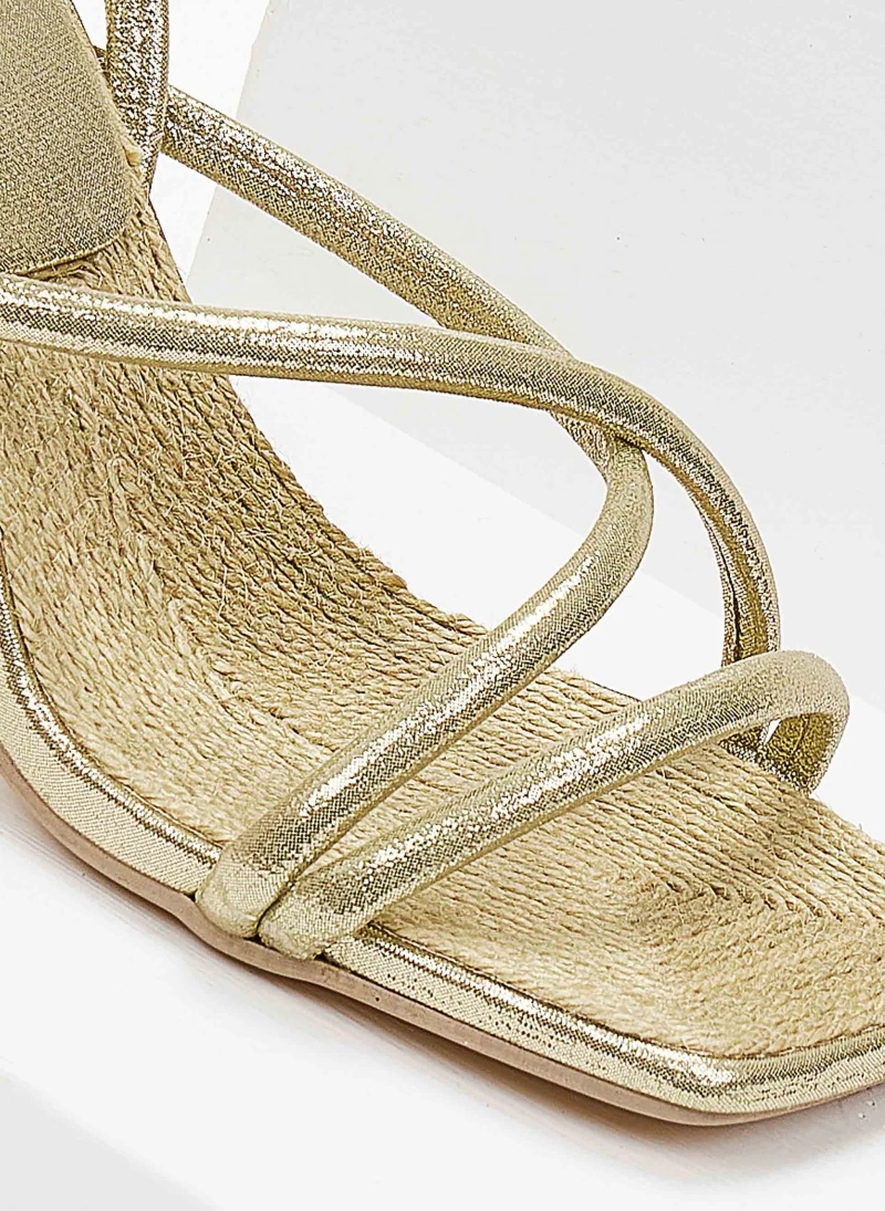 Πέδιλα με glitter στρογγυλά λουράκια.Έχουν σχέδιο με σχοινί στον πάτο.Δένουν με μπαρέτα στο ύψος του αστραγάλου.Καρέ γραμμή.