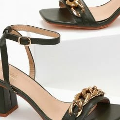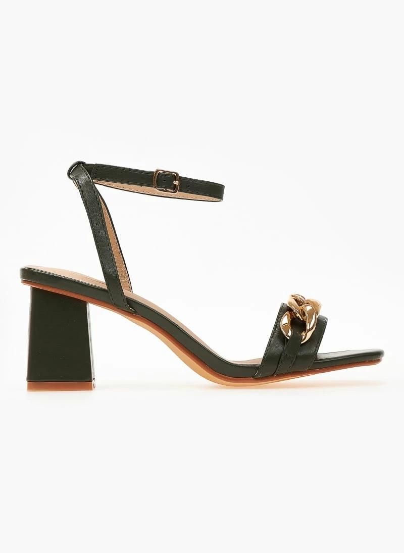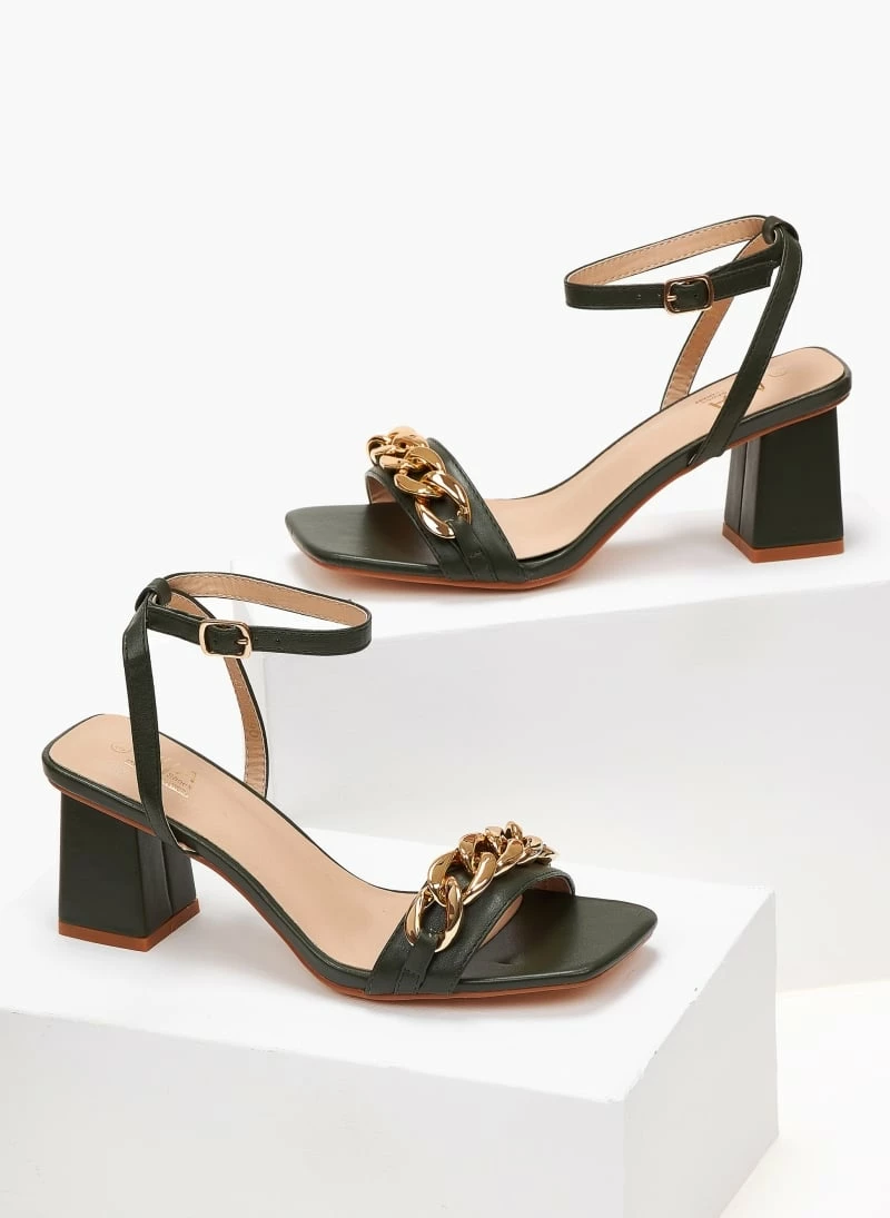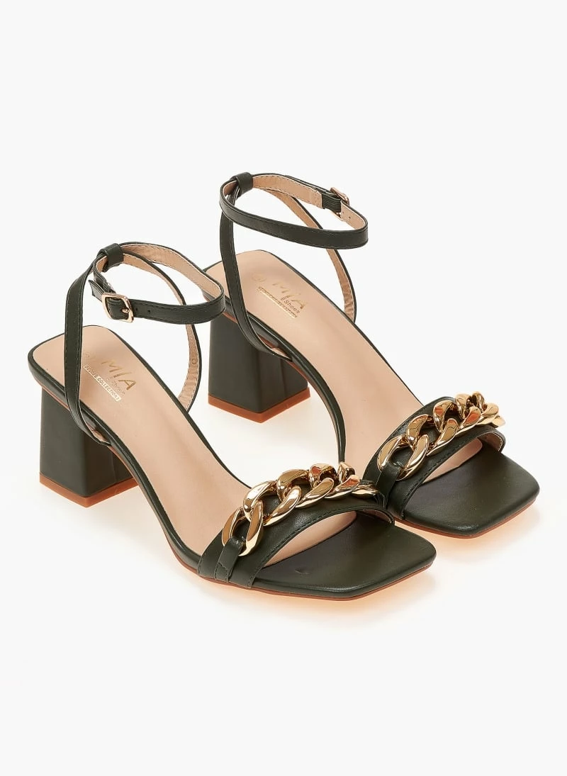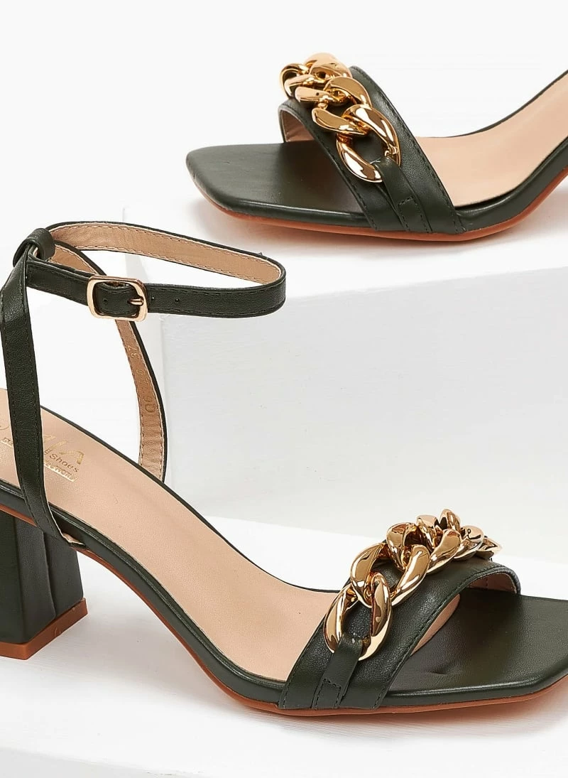 The Fashion Project Πέδιλα καρέ με αλυσίδα – Λαδί