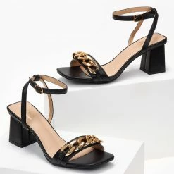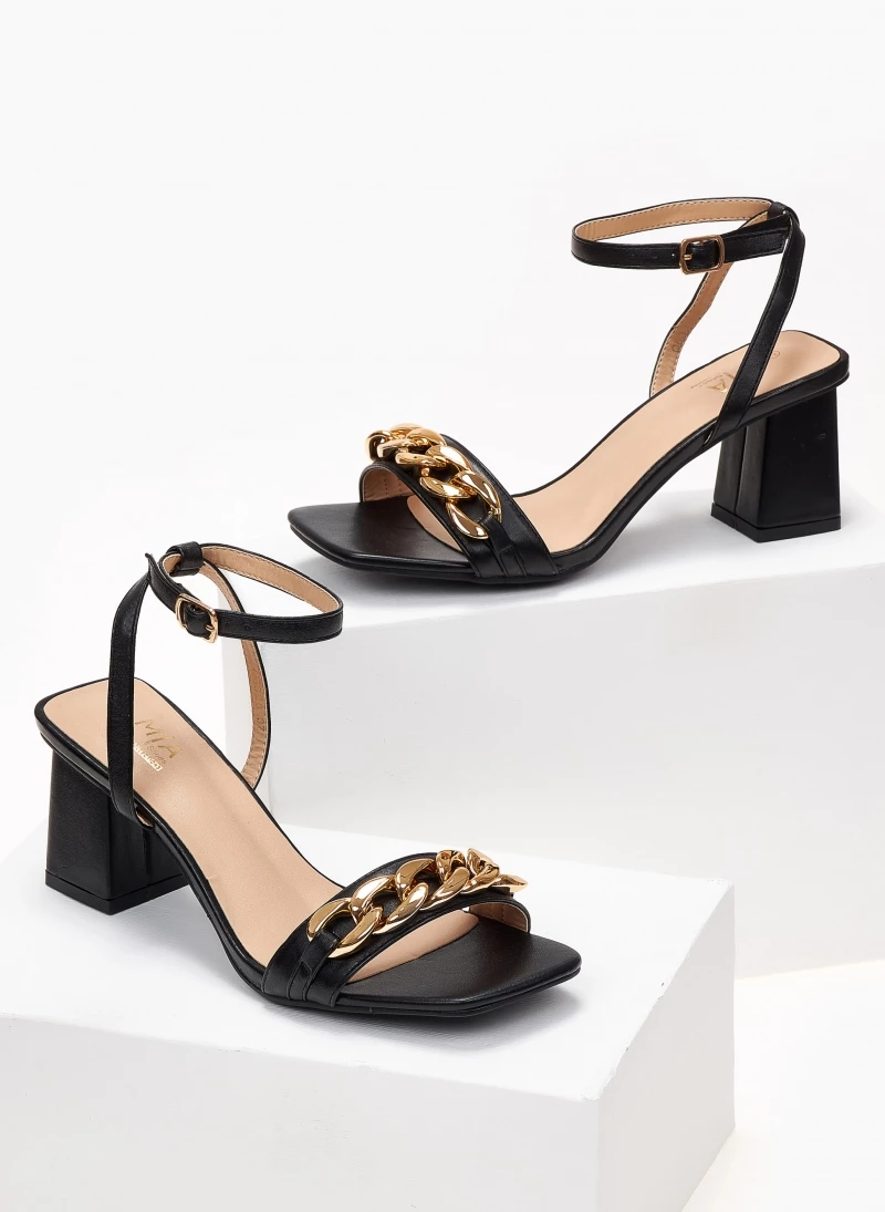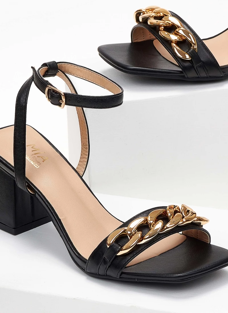 The Fashion Project Πέδιλα καρέ με αλυσίδα – Μαύρο