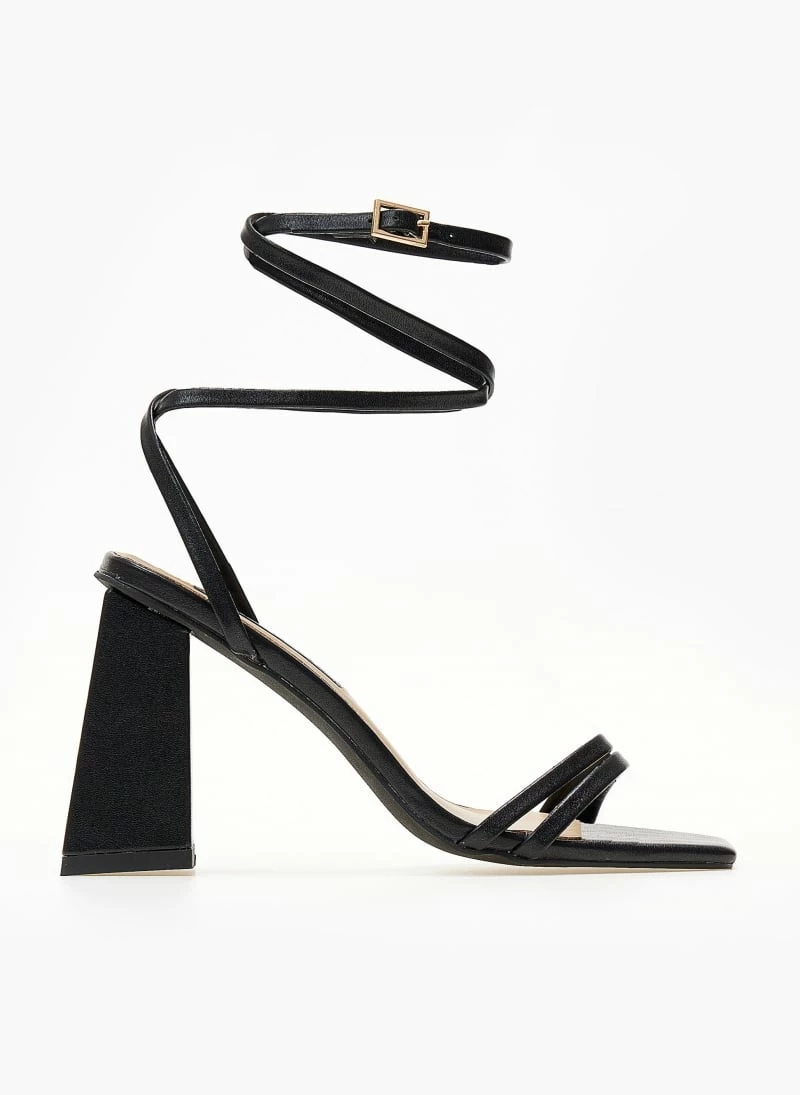 The Fashion Project Πέδιλα καρέ με λεπτά λουράκια – Μαύρο
