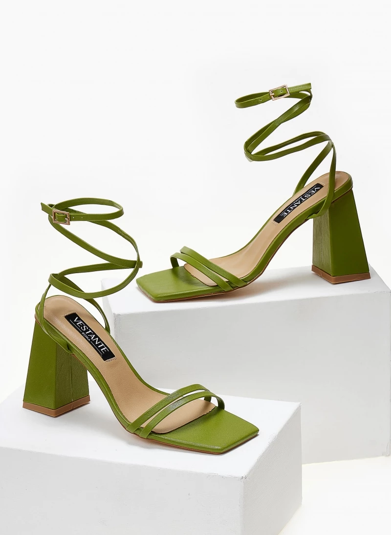The Fashion Project Πέδιλα καρέ με λεπτά λουράκια – Πράσινο
