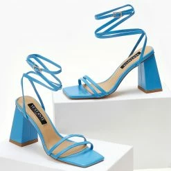 The Fashion Project Πέδιλα καρέ με λεπτά λουράκια – Τυρκουάζ