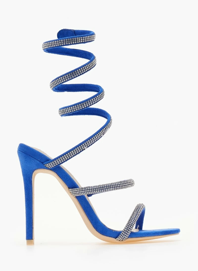 Πέδιλα με έλασμα με strass στη γάμπα. Καρέ γραμμή.