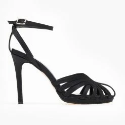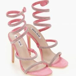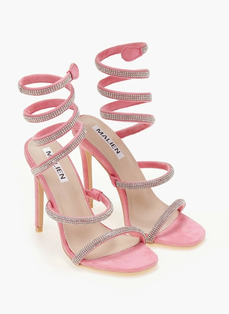 Πέδιλα με έλασμα με strass στη γάμπα. Καρέ γραμμή.